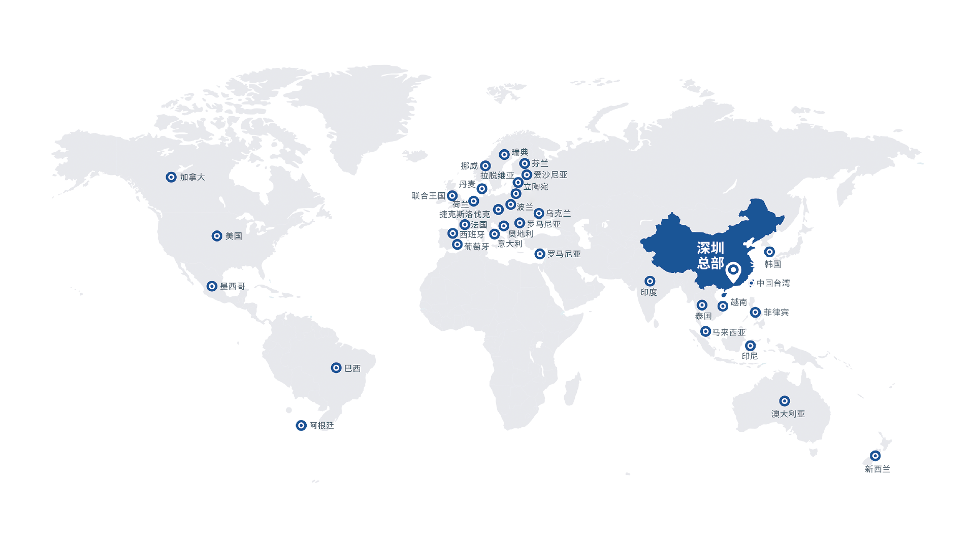 立足于國(guó)內(nèi)深圳、張家港、常州、天津、長(zhǎng)沙、蘇州、濟(jì)南生產(chǎn)基地與備品備件庫(kù),國(guó)內(nèi)外轄180+辦事處,在100多個(gè)國(guó)家和地區(qū)設(shè)立銷(xiāo)售服務(wù)機(jī)構(gòu),為全球用戶提供高品質(zhì)的產(chǎn)品與優(yōu)質(zhì)高效的服務(wù)。